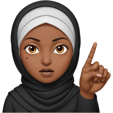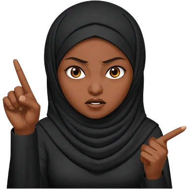 злая черная женщина мусульманка показывает рукой в право emoji | AI Emoji Generator