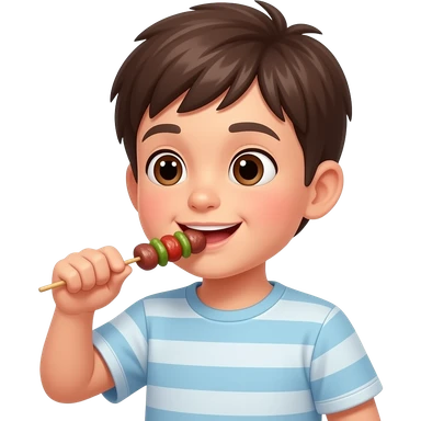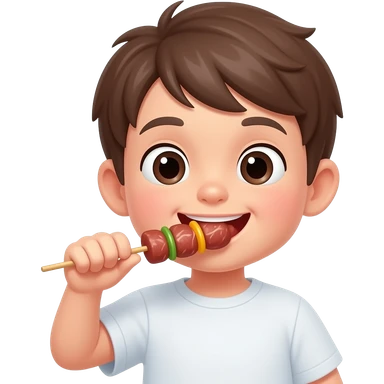 ребенок ест мясо на шампуре emoji