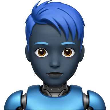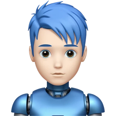 A robot boy with blue hair black emoji