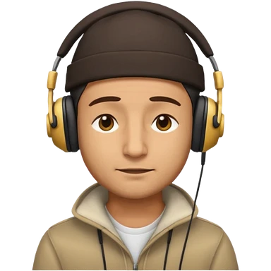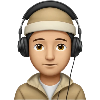 Half body man wearing topi and headphones, eyes closed, realistic emoji style. emoji