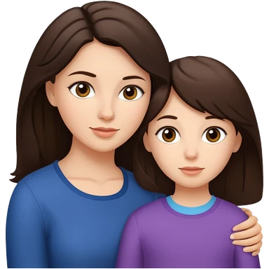 Мама брюнетка с серыми глазами обнимает дочку брюнетку с карими глазами emoji