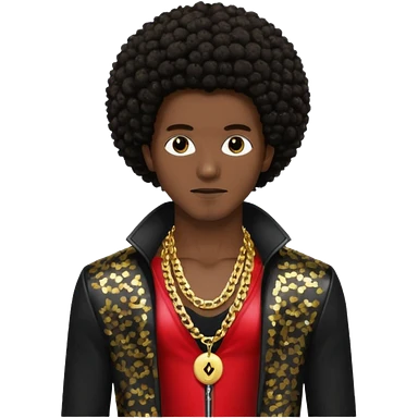 Gallant, R&B Singer with dark brown afro hair, black sequin jacket, shirtless with necklace emoji
