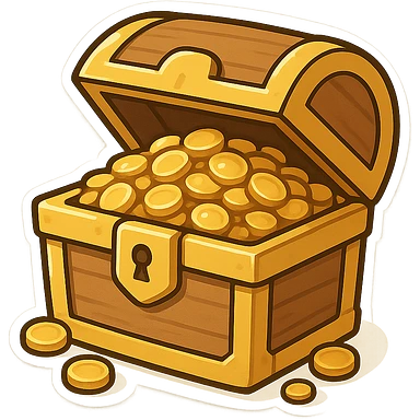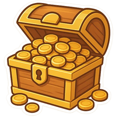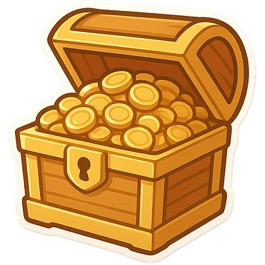 一个金色的宝箱,宝箱里面有许多金币 emoji