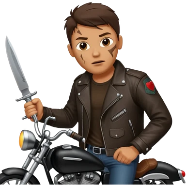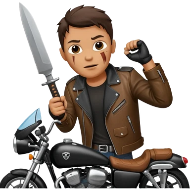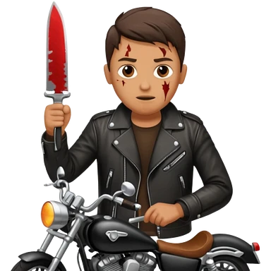 یکموتور سوار باصورت زخمی که چاقو دستش هست موتوری هم مردباشه emoji