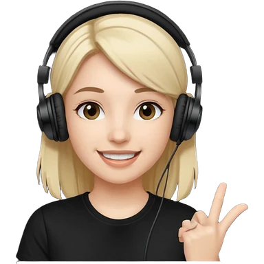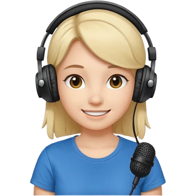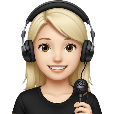 Female, happy, wearing headphone having mic, t-shirt emoji