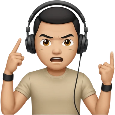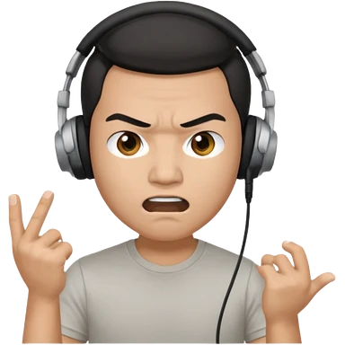 asian Male, angry, wearing headphone having mic, t-shirt emoji
