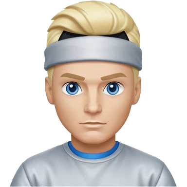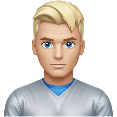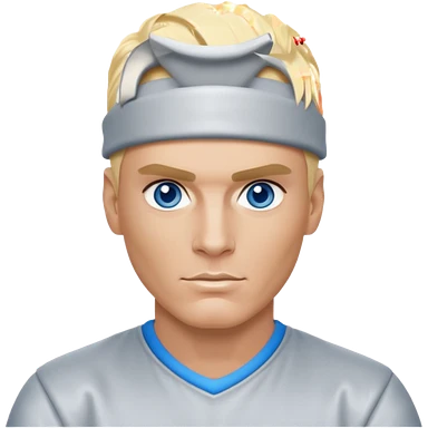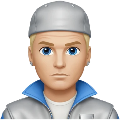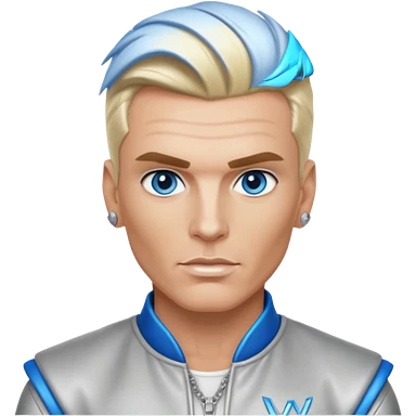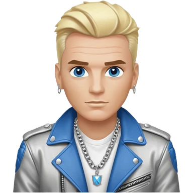 Vanilla Ice with blue eyes, blonde hair, silver outfit emoji