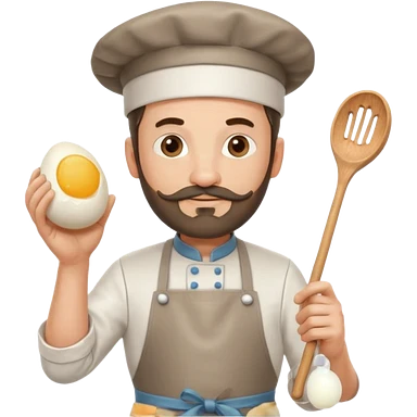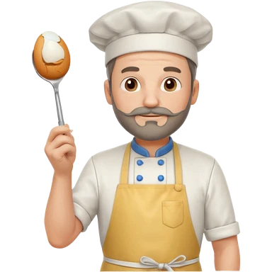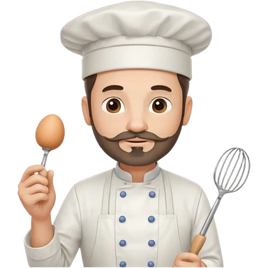 Middle aged male pastry chef - with a small beard, apron, white hat, and holding an egg beater in his hand emoji