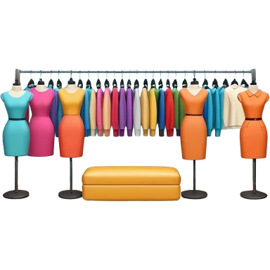 Clothing Store – racks of folded shirts and hanging dresses. emoji
