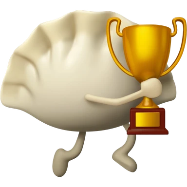 пельмешка обнимает кубок и радуется победе emoji