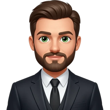 молодой парень с бородой, зеленые глаза в костюме юрист emoji