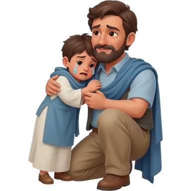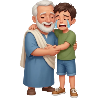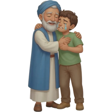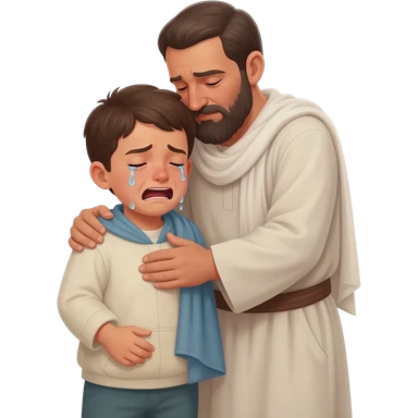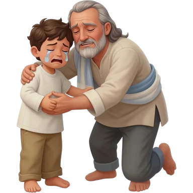 нарисуй как отец со слезами обнимет с любовью и слезами сына в рвной одежде возростом 20-24 года во весь рост , времена древнего иерусалима emoji | AI Emoji Generator