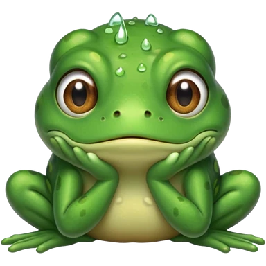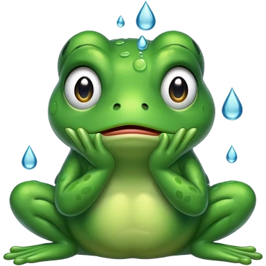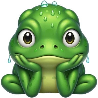 قورباغه ای که ناراحته و دستش رو سرشه و اشکش در اومده emoji