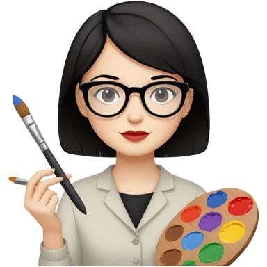MUJER BLANCA, CABELLO CORTO COLOR NEGRO, USA LENTES Y ES PINTORA emoji