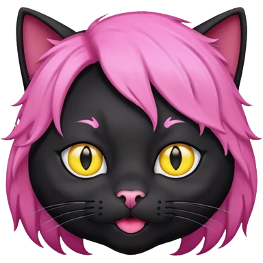 Black cat wearing a male pink hair wig emoji