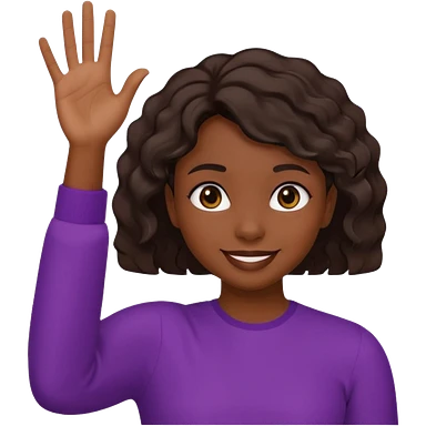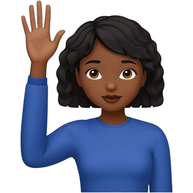 فتاة سمراء البشره ذات شعر قصير مموج ترفع يدها اليمين 🫷🏻هكذا وتعمل حركات ببوجها نفس الاموجي 😜 emoji