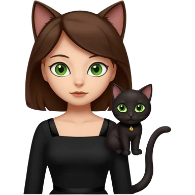 Cartoon female anthrophobic Black Cat with Brown hair emoji