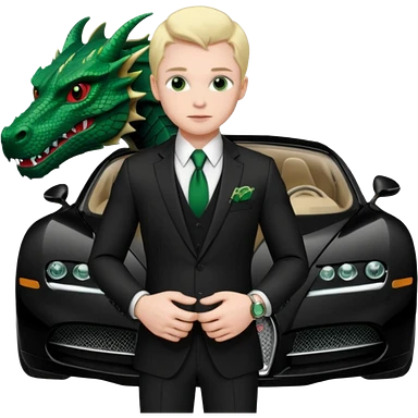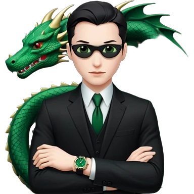 mysterious scenery: green audemars piguet watch (without text), black bugatti, and a dark green dragon, and a mysterious agent from The Matrix emoji
