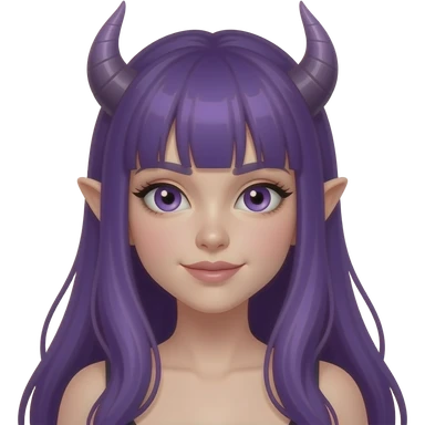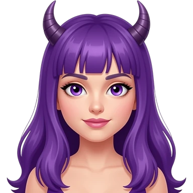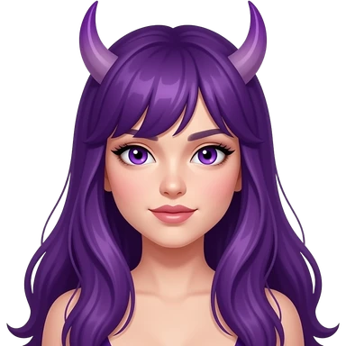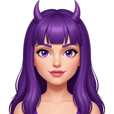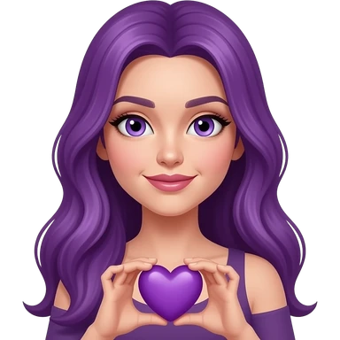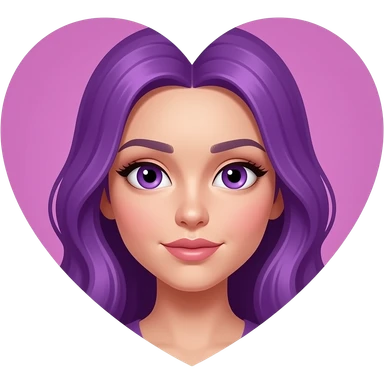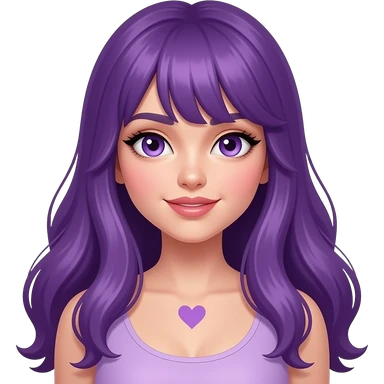sexy girl with long purple hair and purple eyes with a heart emoji