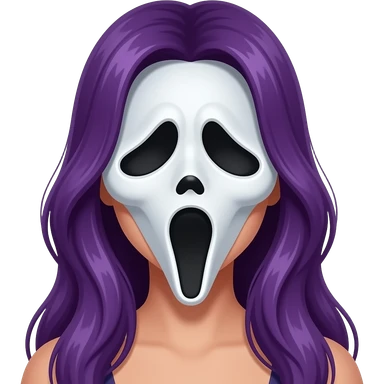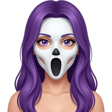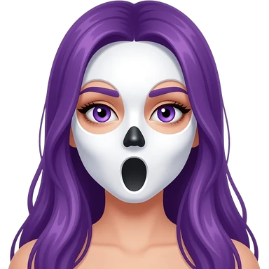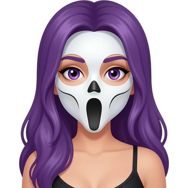 sexy girl with long purple hair and purple eyes wears a ghostfacemask emoji
