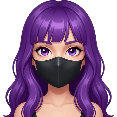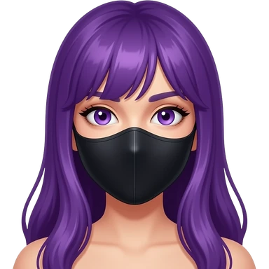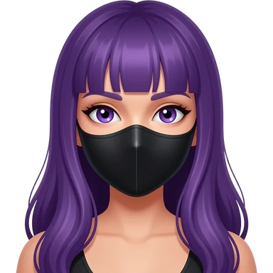 sexy girl with long purple hair and purple eyes wears a black mask emoji
