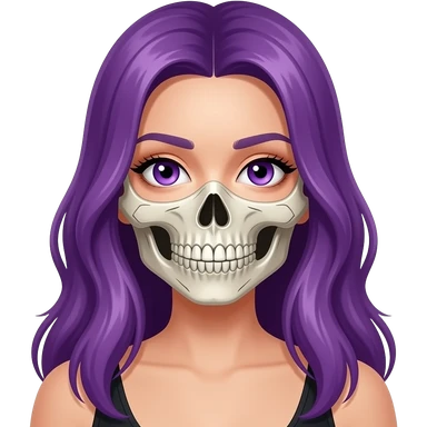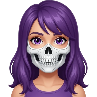 sexy girl with long purple hair and purple eyes wears a skullmask emoji