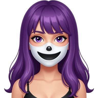 sexy girl with long purple hair and purple eyes wears a mask emoji