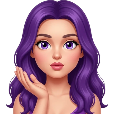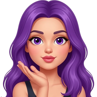 sexy girl with long purple hair and purple eyes gives a air kiss emoji