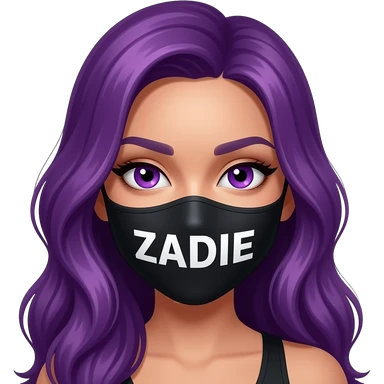 sexy girl with long purple hair and purple eyes wears a black mask with ZADIE written on it emoji