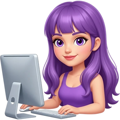 sexy girl with long purple hair and purple eyes is working on computer emoji