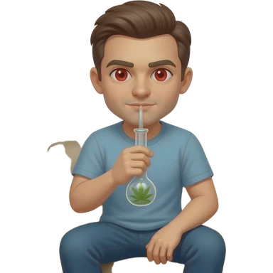 A man smoking weed in bong and his eyes is full red and he is sitting on the couch emoji