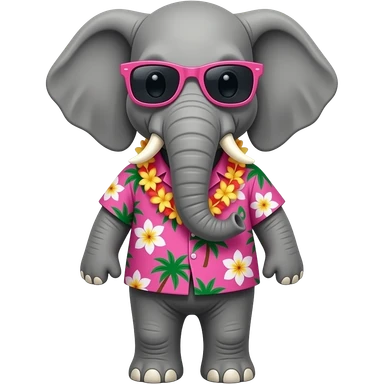 слон в гавайській рожевій сорочці тусується(танцює) в клубі в рожевих окулярах, в руках у нього коктейль, він захоплюво танцює emoji | AI Emoji Generator
