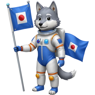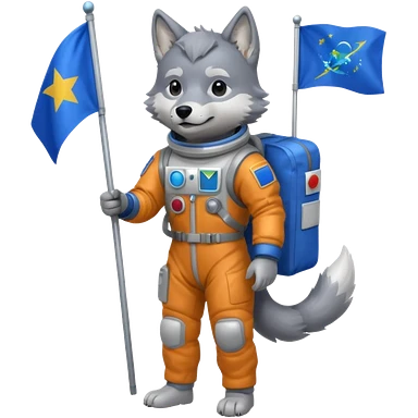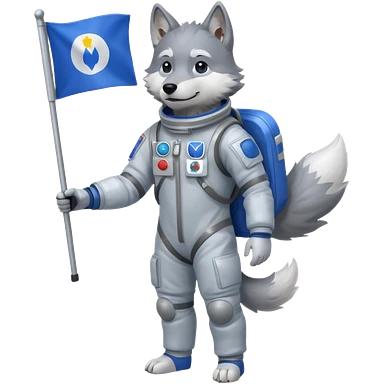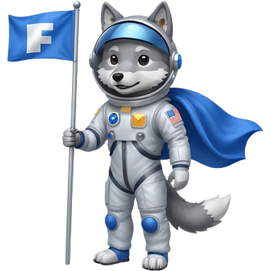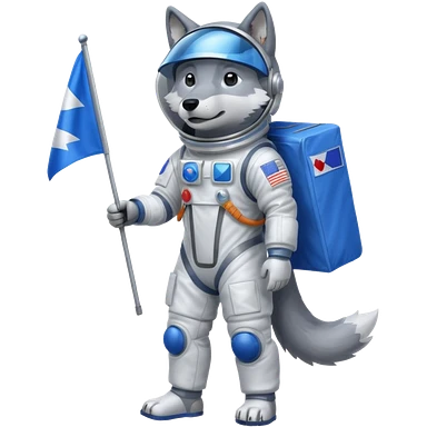 a wolf in space suit, holding blue rectangle flag, full body emoji
