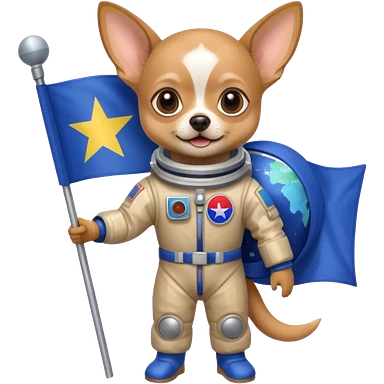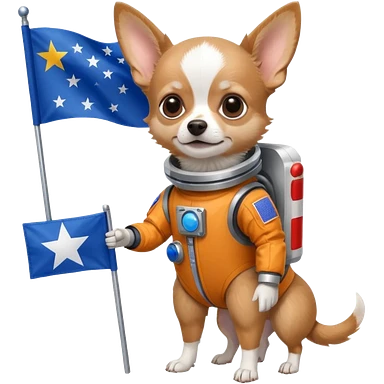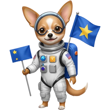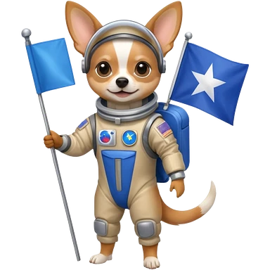 a chihuahua dog in space suit, holding blue rectangle flag, full body, front view emoji