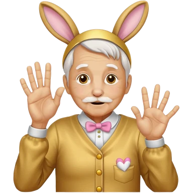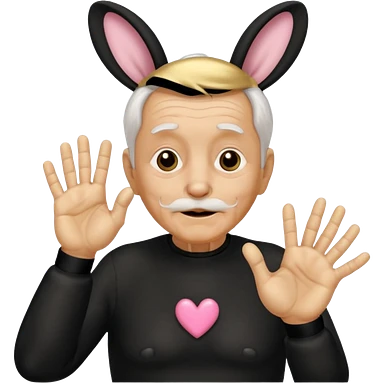 바니걸 옷을 입은 피부가 황금으로 된 할아버지가 손하트를 날리며 부끄러워한다 emoji