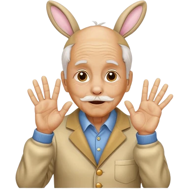 피부가 황금으로 된 할아버지가 말 코스프레를 하고 손으로 하트 모양을 만들며 부끄러워한다 emoji