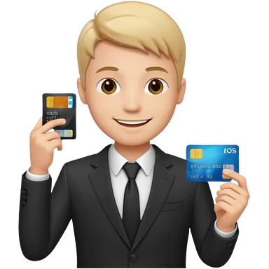 پسر جذاب با کلاس با کت شلوار با یک کارت بانکی به دست emoji
