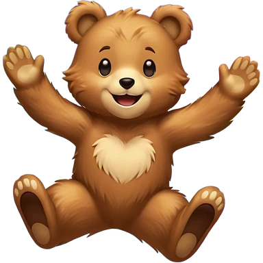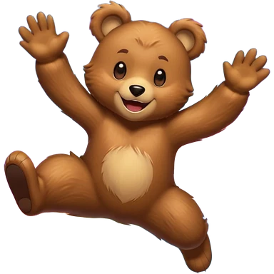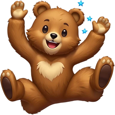 Full Beary jumping with joy, starry eyes, big grin, energetic pose, motion blur, colorful anime style emoji