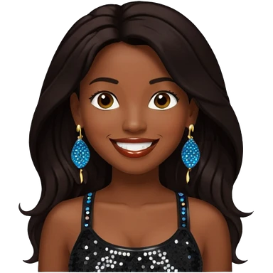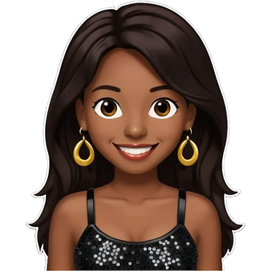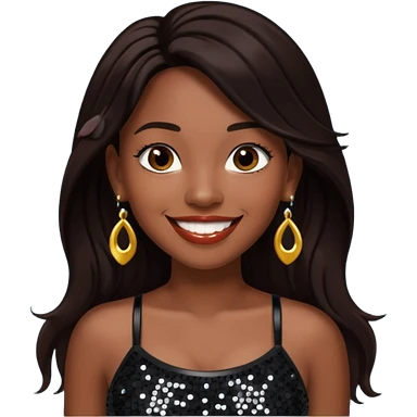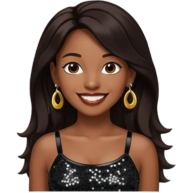 Chilli from TLC with long dark brown hair, black sequin crop top, black earring, dark skin emoji