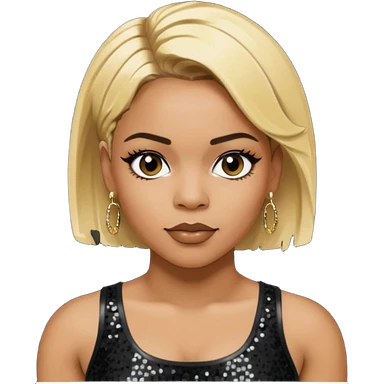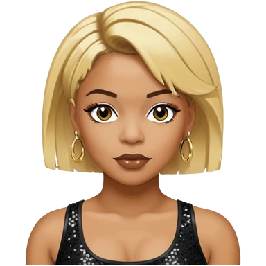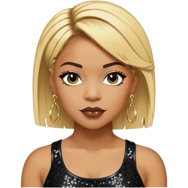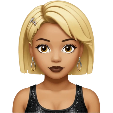 T Boz from TLC with short blonde hair, black sequin crop top, black earring emoji