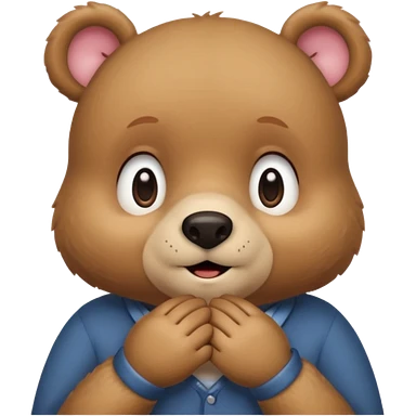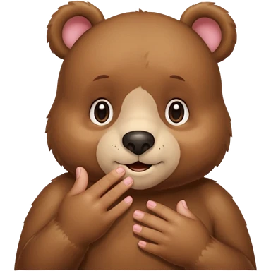 Full Beary is blushing deeply, looking away, fingers touching, bashful smile, soft pastel background emoji