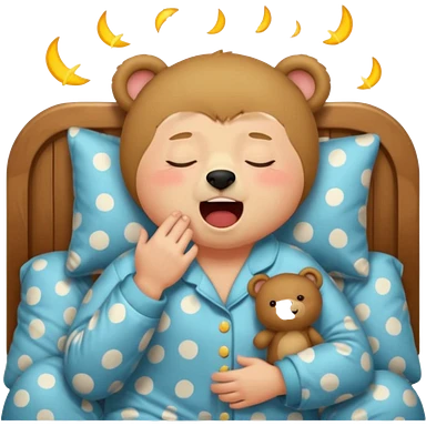 Full Beary yawning, half-closed eyes, sleepy smile, cozy pajamas, warm lighting, bedtime aesthetic emoji