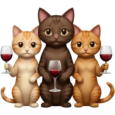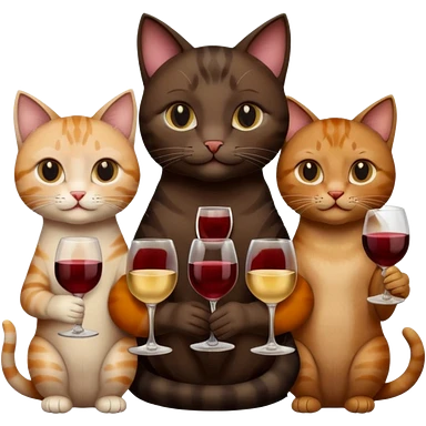 три кошки черная,коричневая,бежевая с бокалом вина emoji