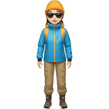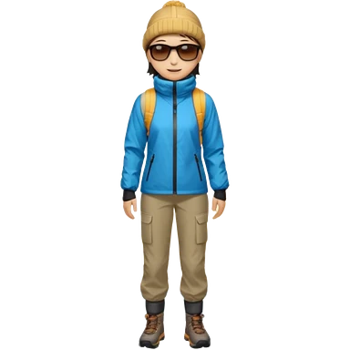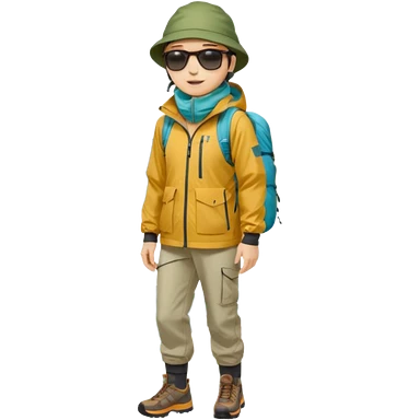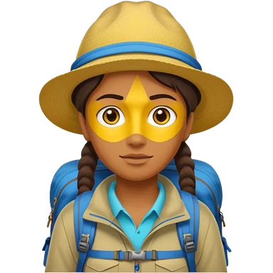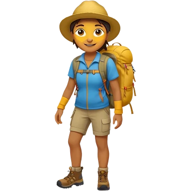남미 여행에 가는 사람의 전신을 그려줘! 바로 하이킹 갈 수 있을 정도로 잘 입은! 활짝 웃는 걸로 해주고 인종 문제가 있을 수 있으니까 얼굴은 걍 노란색? 으로 emoji | AI Emoji Generator