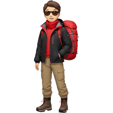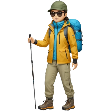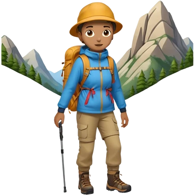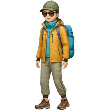 남미 여행에 가는 사람의 전신을 그려줘! 바로 하이킹 갈 수 있을 정도로 잘 입은! emoji