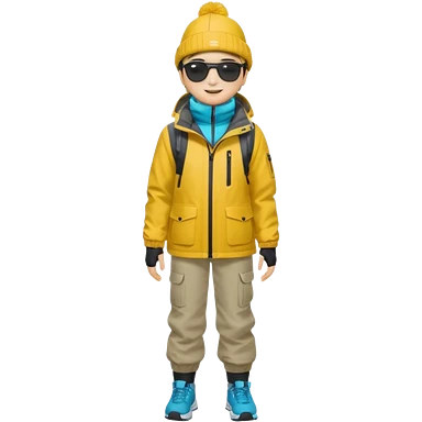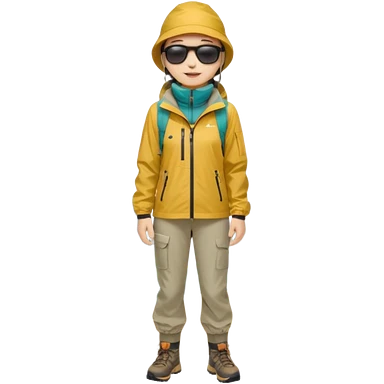 남미 여행에 가는 사람의 전신을 그려줘! 바로 하이킹 갈 수 있을 정도로 잘 입은! 얼굴은 걍 완전 노란색으로 emoji