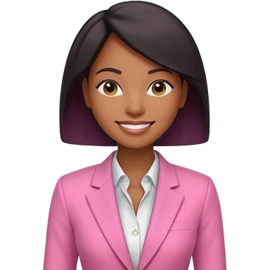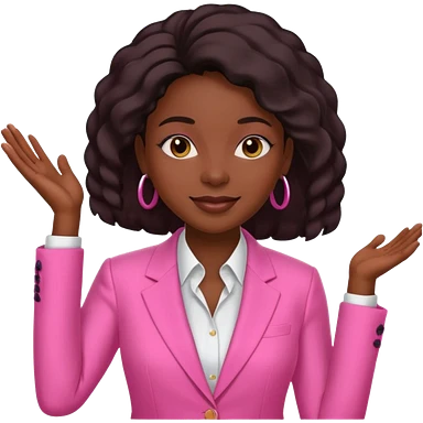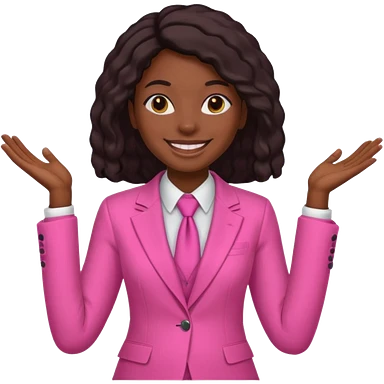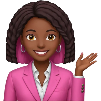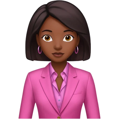 Darkskin black woman wearing a pink suit with a silk press emoji
