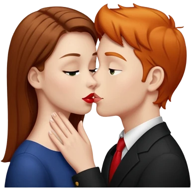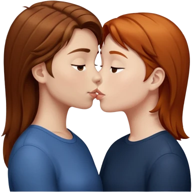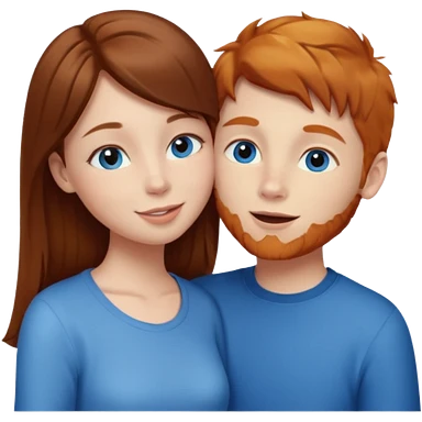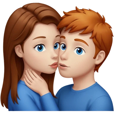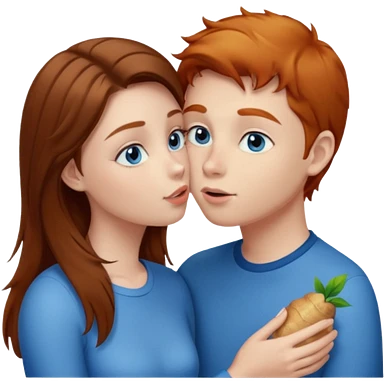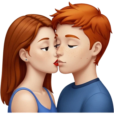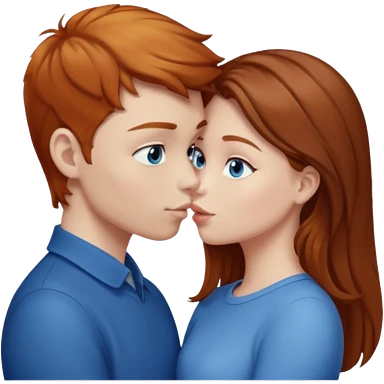 Girl with straight brown hair kissing ginger boy. Both have blue eyes emoji