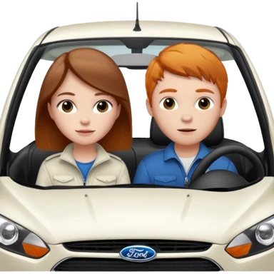 Two mouses, one girl with brunette long hair and one ginger short hair boy, boy drive a white ford focus card emoji