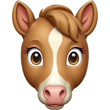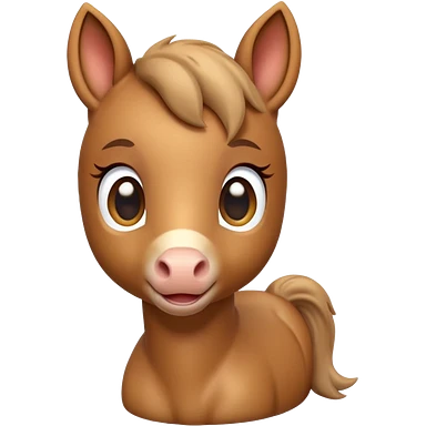 3D Apple-style emoji of a cute foal (young horse). Small body, big eyes, short mane, light brown color, rounded and glossy, smooth shading, white background. emoji